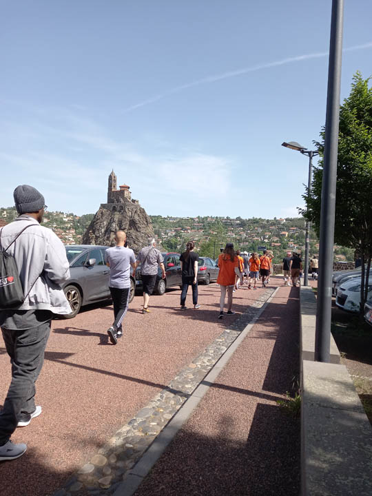 Dès l’arrivée du bus, les jeunes ont accueilli leurs invités et ont commencé la visite de la ville du Puy en commençant par l’ascension vers la cathédrale à travers les ruelles.