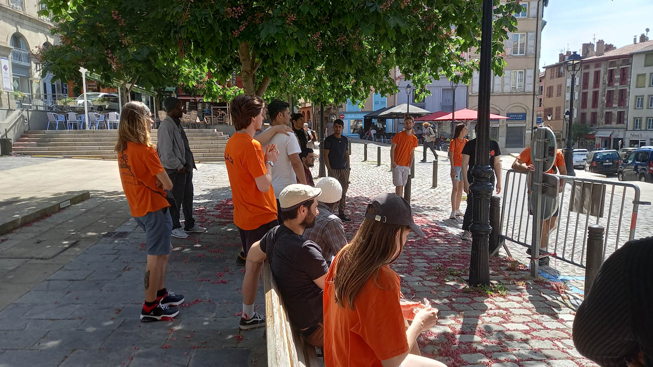 Les jeunes d’Unis-Cité ont créé un groupe WhatsApp et ont lancé les invitations. Le jour ‘J’, des bénévoles ont soutenu cette rencontre en accompagnant les gars du CADA au Puy. Jean-Paul, bénévole de la LOCO, était donc au rendez-vous à 8h30 au CADA pour conduire les huit invités en minibus jusqu’au Puy.