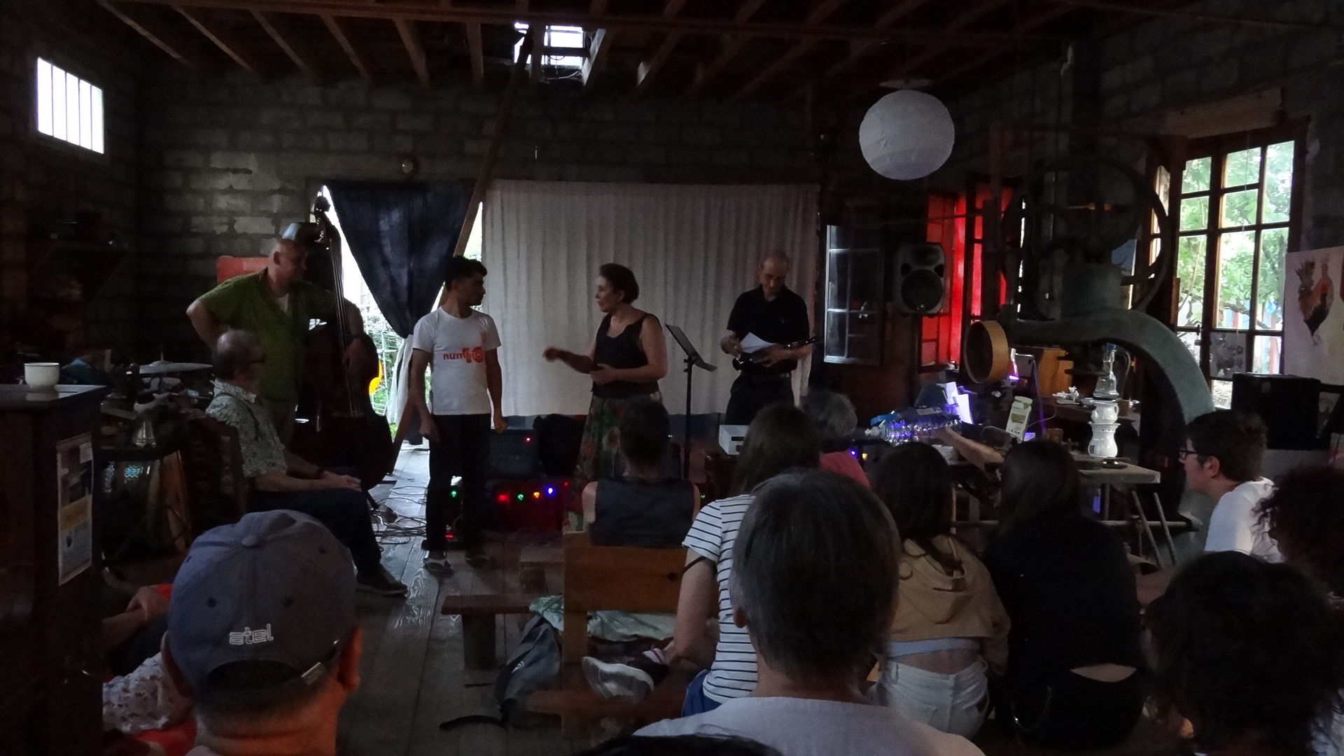 Quand le noir a été suffisant, on a pu passer à la projection proprement dite. Pendant que des films muets étaient projetés sur l'écran, piano et contrebasse accompagnaient, illustraient et rythmaient l'image.