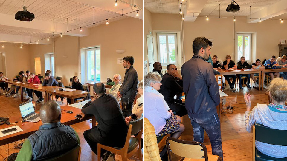 En deux heures, l’échange est bref et nous ressentons que des questions pourraient surgir avec davantage de temps ou des échanges en plus petits groupes, qui favoriseraient sans aucun doute, une confiance de proximité et donc des dialogues plus riches ? Avec notre expérience de deux années, nous constatons également que les exilés qui viennent plusieurs fois, prennent de l’assurance et s’adaptent au public. Leur témoignage reste toujours poignant et ce sont de forts moments d’émotions pour les unes et les autres. S, après cette rencontre était très affecté. Et on peut se demander si cet « exercice » n’est pas trop violent ? Pour échanger avec « d’anciens », ils expriment effectivement la douleur d’exposer leur parcours mais en même temps se sentent reconnus dans leur identité et souffrance. Toutefois, nous n’avons jamais assisté à de la victimisation et c’est toujours avec beaucoup de pudeur et de décence quand ils « racontent ».