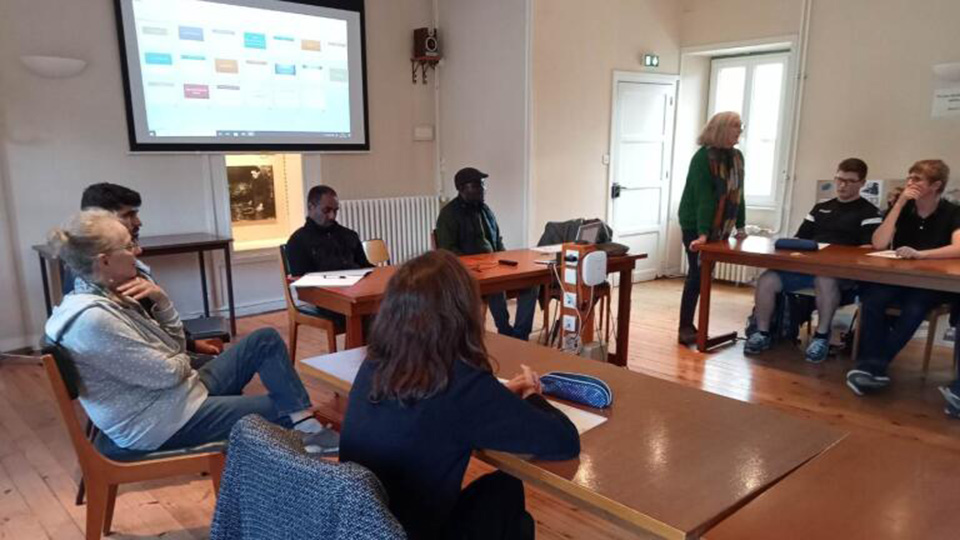 Un peu de stress, en passant au CADA chercher les personnes qui veulent bien témoigner : une rage de dents pour l’un, et un peu de panique pour un autre. Donc, un peu déstabilisée, visites et « recrutement » au sein des espaces communs en urgence. Très gentiment U et H ont accepté, au pied levé de venir. S, lui, étant partant dès le début. Lors du trajet, explications sur le déroulement des interventions et objectifs de ces rencontres : déconstruire des préjugés et à-priori à l’égard des exilés.