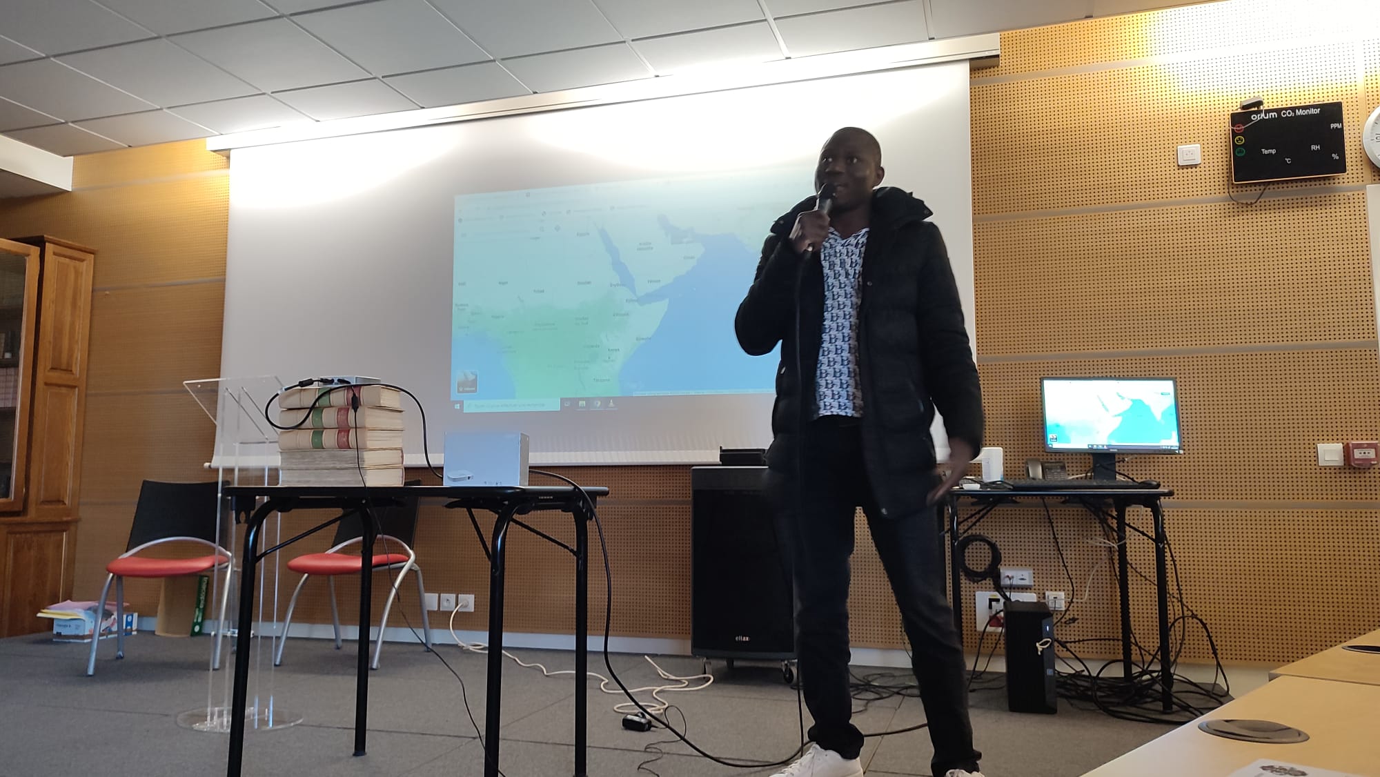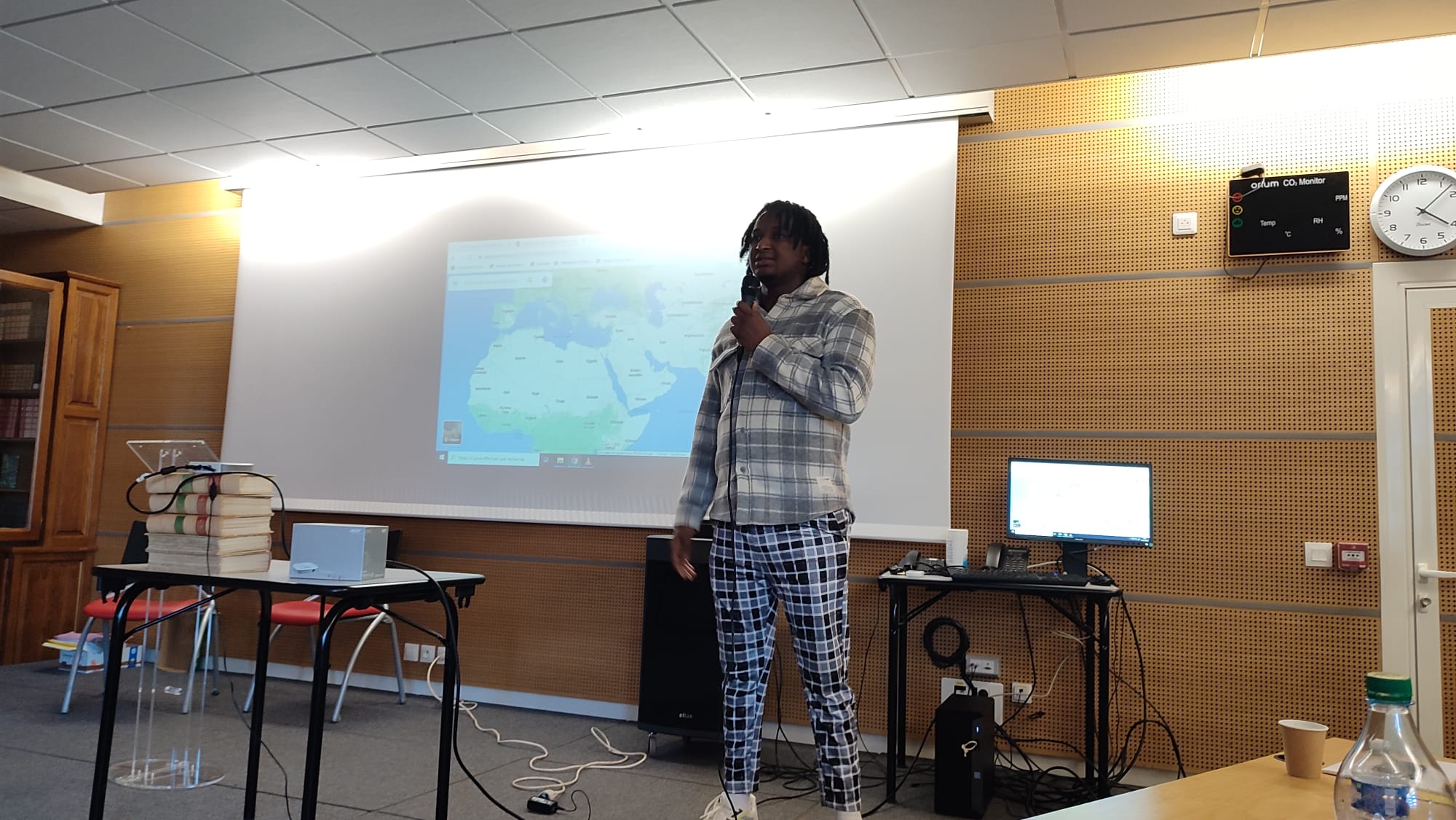 Au début, je me suis présenté en français, dans la mesure où je connais la langue française, et après j'ai continué dans le peu d'anglais que je maîtrise couramment, avec un professeur du personnel de l'école traduisant pour les élèves et la présence d'une étudiante arabe de Tunisie nommée Maryam qui a traduit des passages que j'ai eu du mal à comprendre.