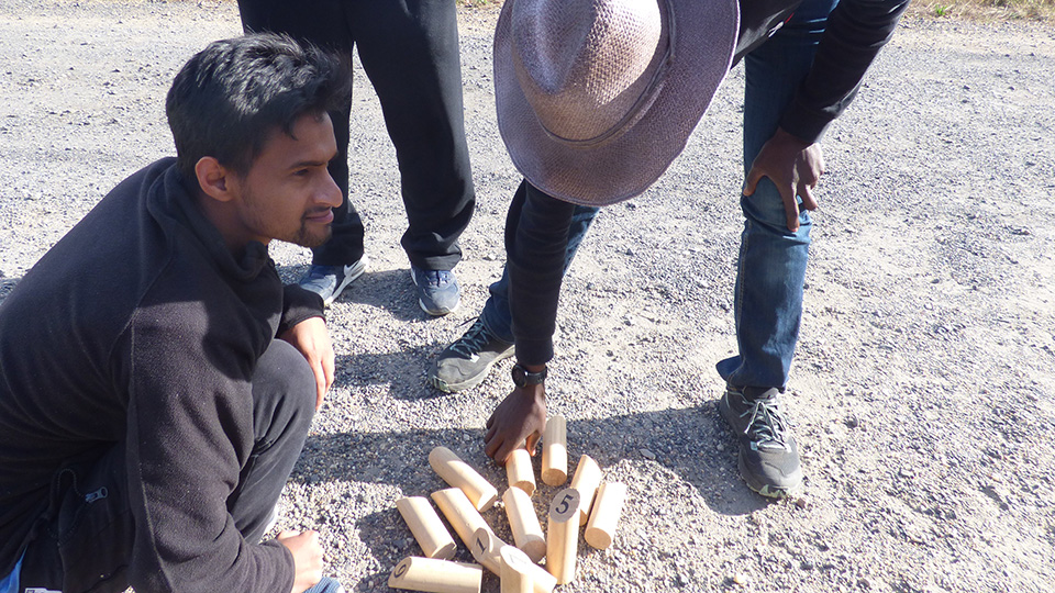 Après avoir pris le thé ou le café et dégusté les pâtisseries (il n'est rien resté), certains ont été jouer dehors au Mölkki (Nathalie de Soleil Devant n'était pas disponible et n'avait pas pu amener ses jeux en bois)...