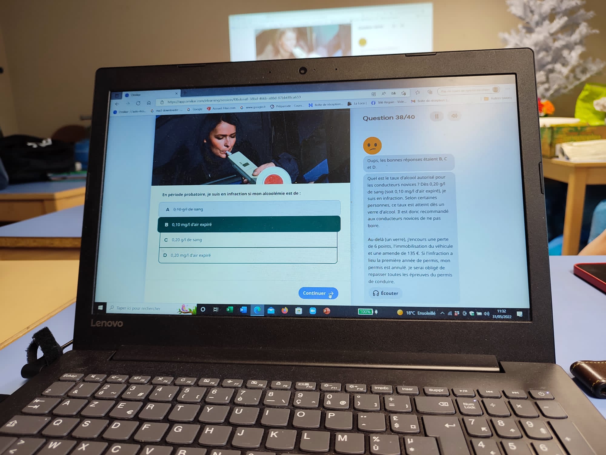 Comme depuis plusieurs mois, le mardi matin a lieu le cours de code de la route.