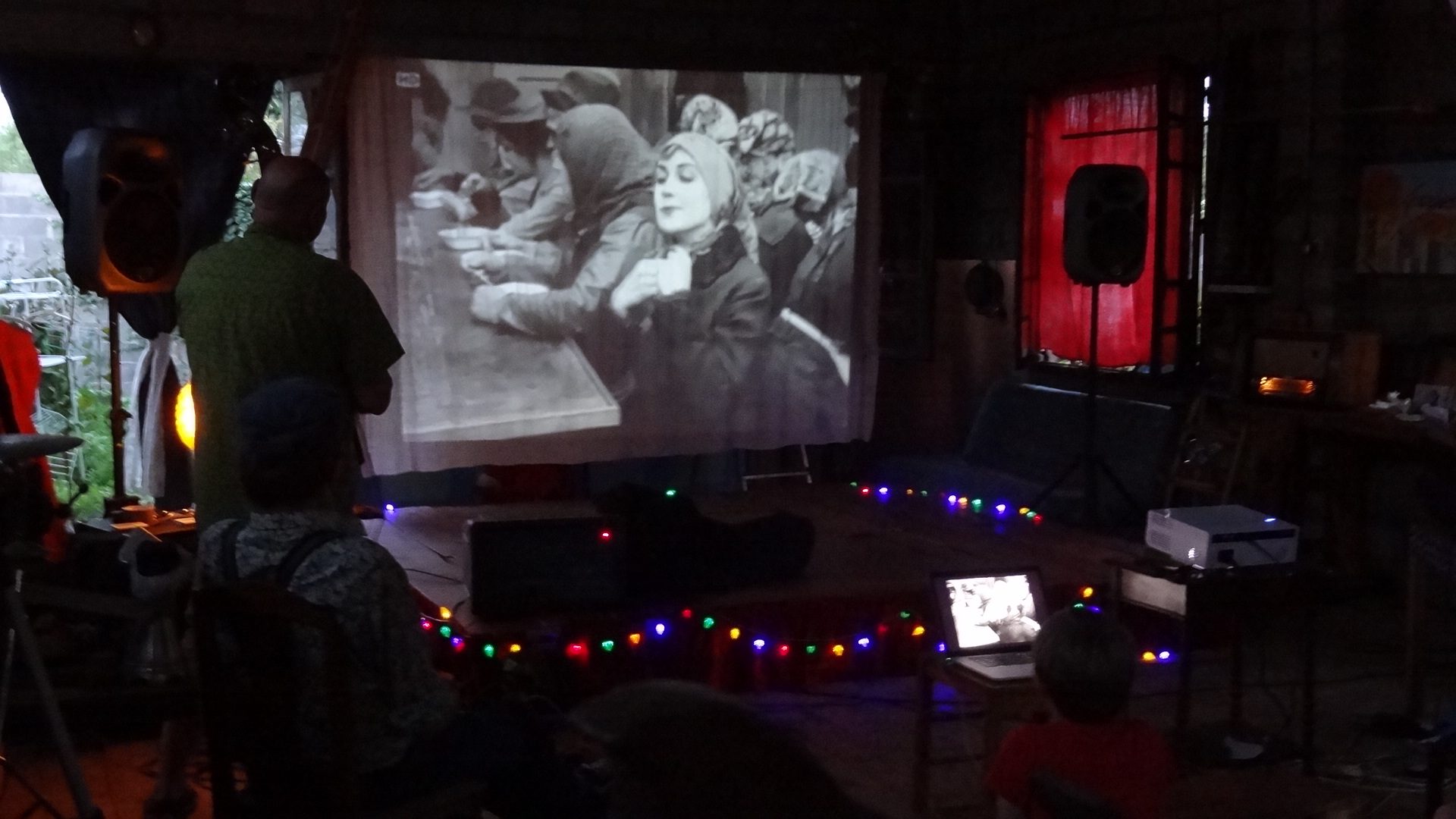 Quand le noir a été suffisant, on a pu passer à la projection proprement dite. Pendant que des films muets étaient projetés sur l'écran, piano et contrebasse accompagnaient, illustraient et rythmaient l'image.