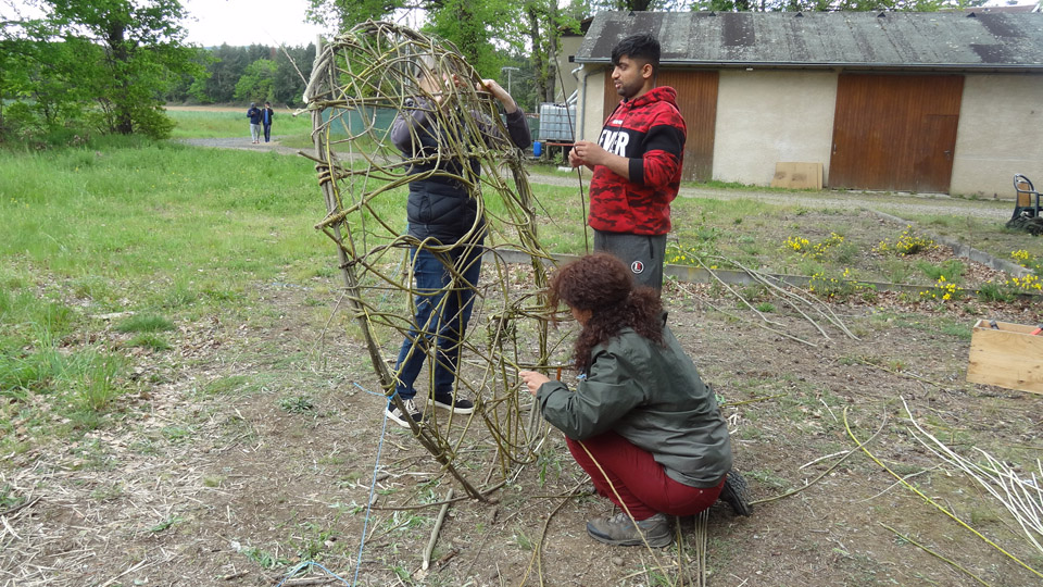Les Brindilleuses nous proposaient un projet artistique et participatif en vannerie aléatoire : la création d’un grand visage en vannerie. Le concept derrière l’ouvre d’art était de créer ensemble avec les demandeurs d’asile un visage pour représenter les invisibles, les demandeurs s’asile « cachés » à Saint Beauzire. De plus nous allons sortir notre œuvre d’art car nous l’exposons au festival d’art brut Godiv’Art.
