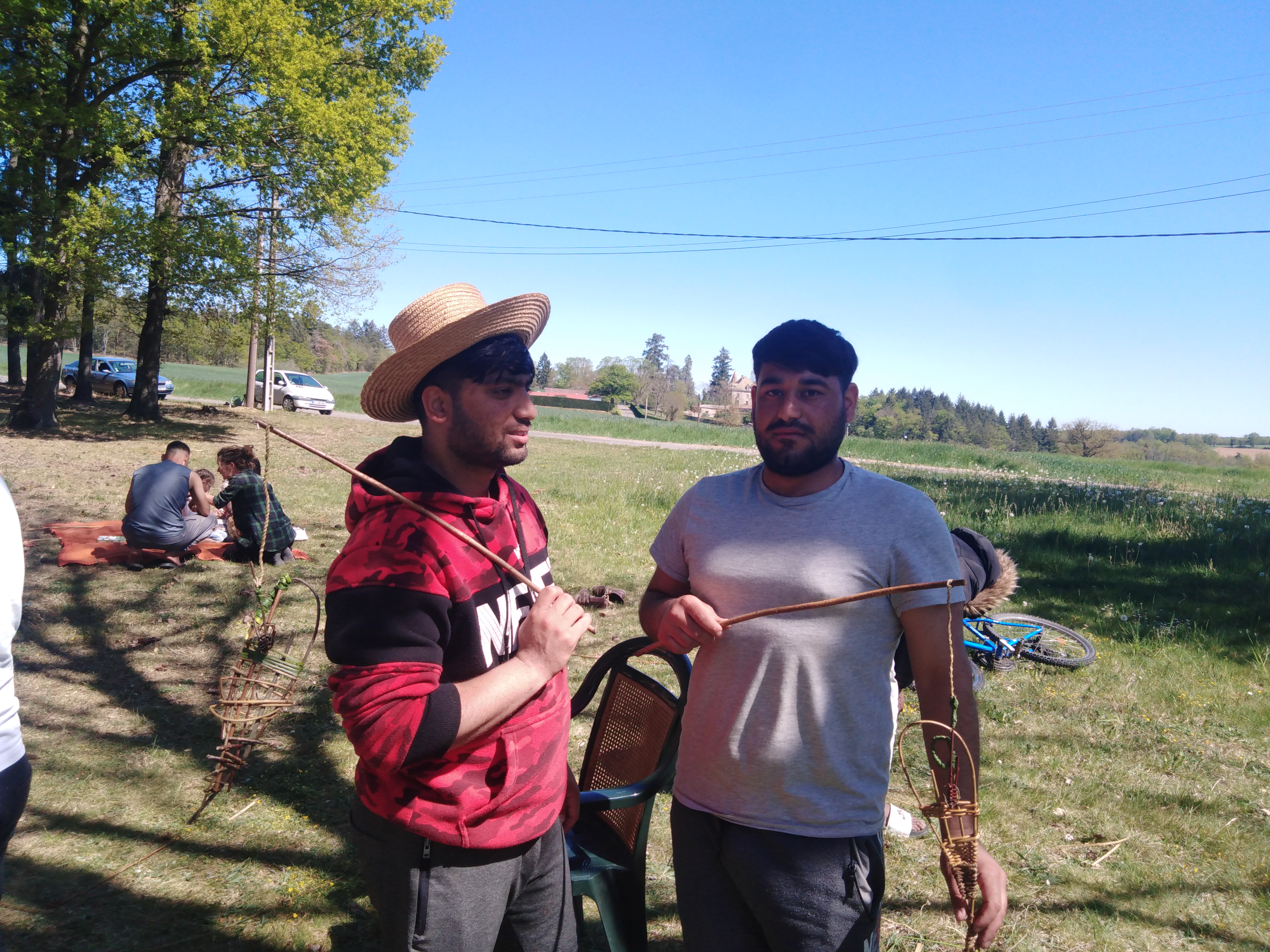 L’aventure commençait le mercredi 3 mai. Deux Brindilleuses, Alexandra et Nathalie, ont animé un petit atelier de découverte de vannerie artistique. Sous un soleil radieux, les résidents de tout âge ont créé des poissons et des cannes à pêche en osier. Nathalie et Alexandra ont profité de ce moment pour parler du projet artistique et pour annoncer l’atelier de la semaine suivante.