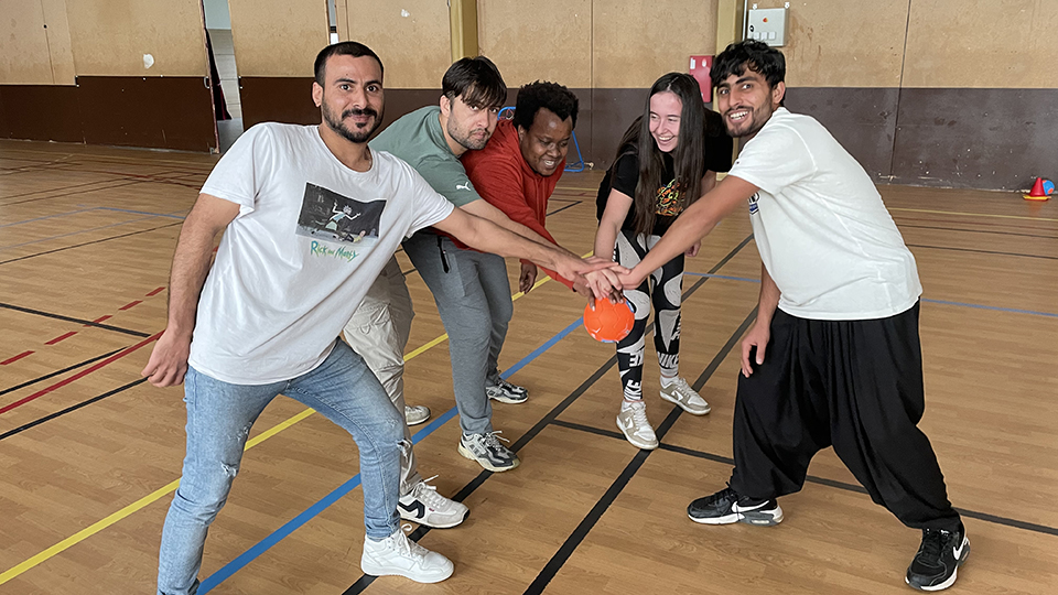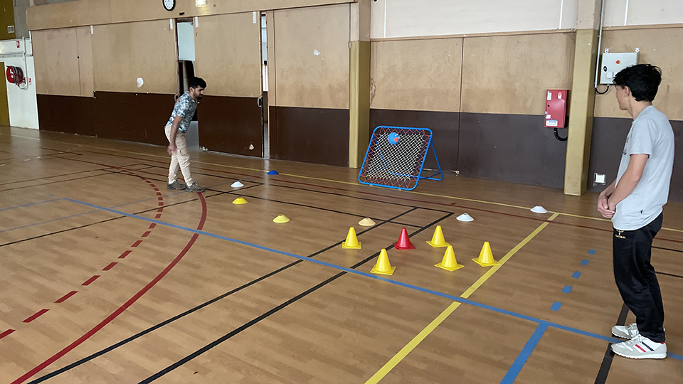 Après l’échauffement, Jérémy les a initiés au tchoukball.