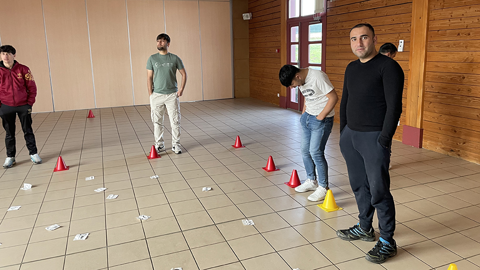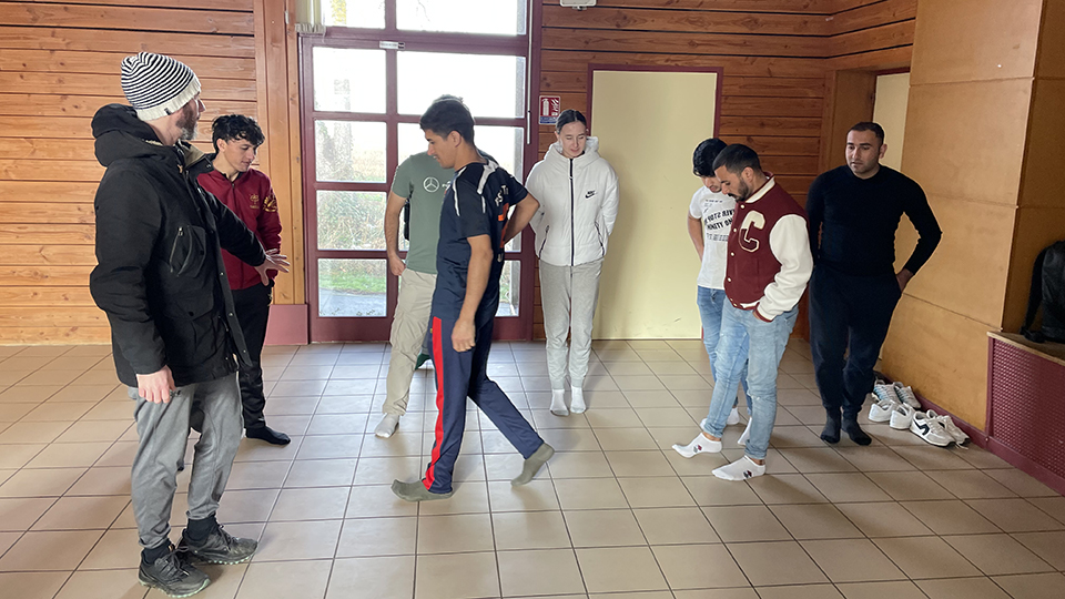 En guise d’échauffement, Jérémy propose au groupe le jeu sportif : Le nœud gordien