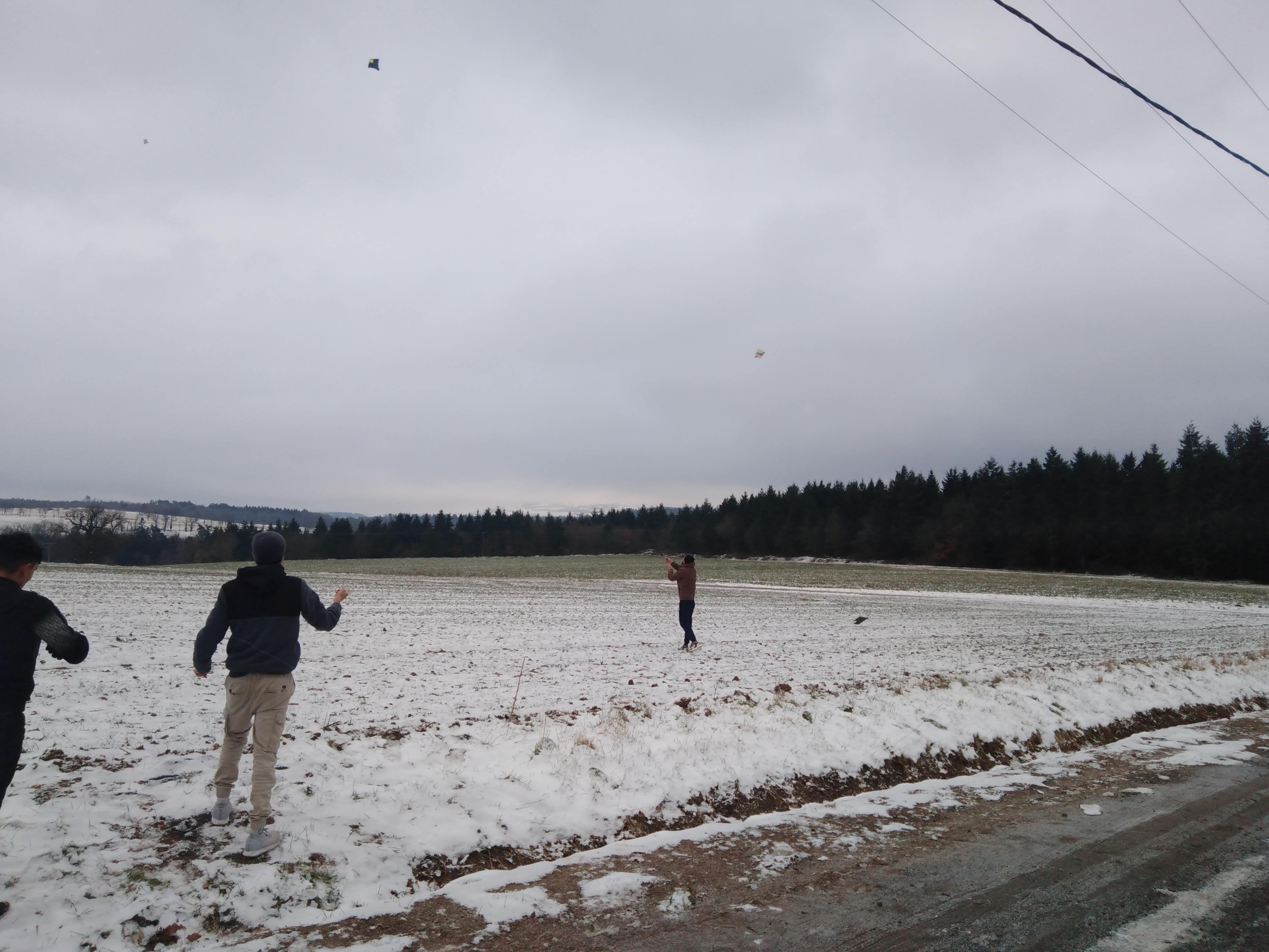 Mais pas à La Loco. Nous avons donc reçu Emmanuelle Bacherach, spécialiste en cerfs-volants de l’association Cultive ton ciel. Après nous avoir montré divers cerfs-volants impressionnants des quatre coins du monde, Manu a ouvert la malle contenant les petits cerfs-volants de combat. Quelle joie !!! Tous les afghans autour de la table était excités à la vue de ces cerfs-volants et l’excitation était à son comble quand Manu a sorti les bobines de fil spécifique à la bataille de Gudiparan. Impossible de maintenir le groupe à l’intérieur. Vite, vite tous s’avèrent des fin connaisseurs de cerfs-volants et fixent les fils aux cerfs-volants. 1 2 3 et hop dans les airs. Même si, on nous précise bien qu'en Afghanistan, on fait voler les Gudiparan un peu toute l’année, mais quand même pas quand il y a de la neige.