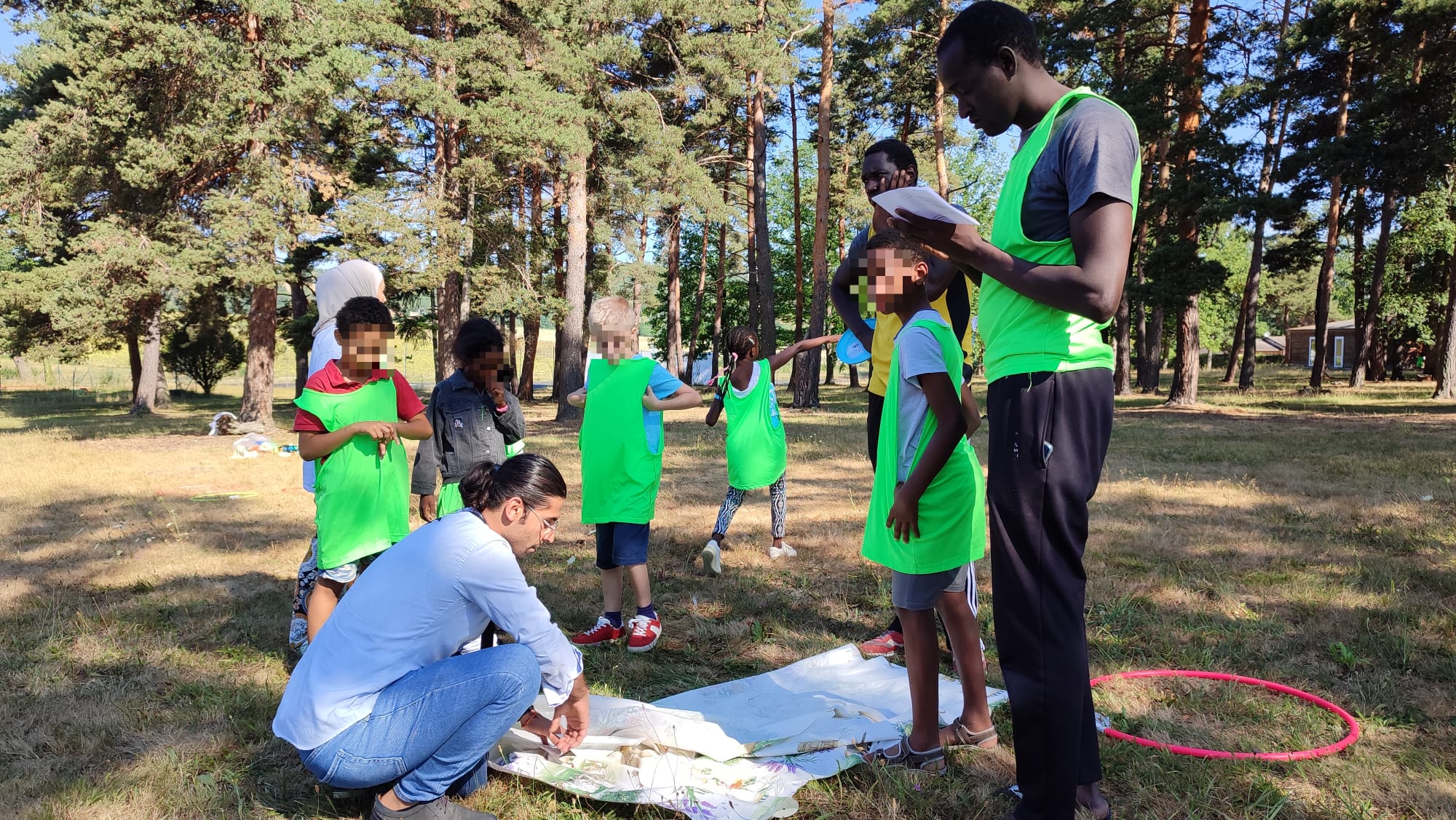 Aujourd’hui parmi les enfants présents, il y avait les enfants du Centre d’Accueil de Demandeurs d’’Asile. Grâce à l’aide financière de la Jeunesse au Plein Air, ils participent chaque jour aux activités de l’Accueil de Loisirs et passent ainsi des vacances avec d’autres enfants dont ils peuvent se faire des copains. Il y avait aussi des enfants de réfugiés habitants le territoire. Une aide de la JPA permet à une dizaine d’enfants de participer quelques fois dans la semaine.