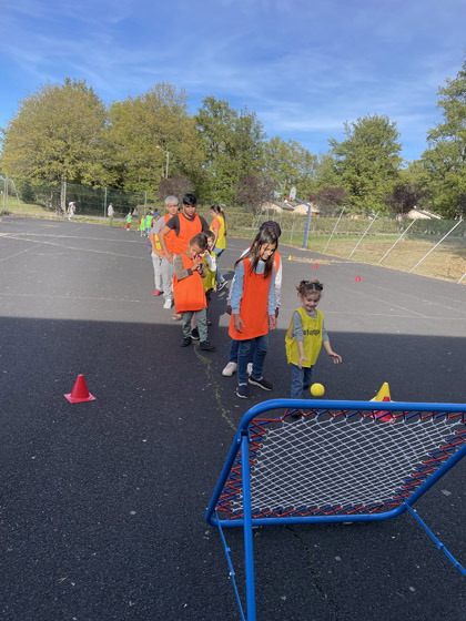 Quatre équipes ont été constituées… Et les enfants ont apprivoisé les cages du tchoukball et les rebonds du ballon.
