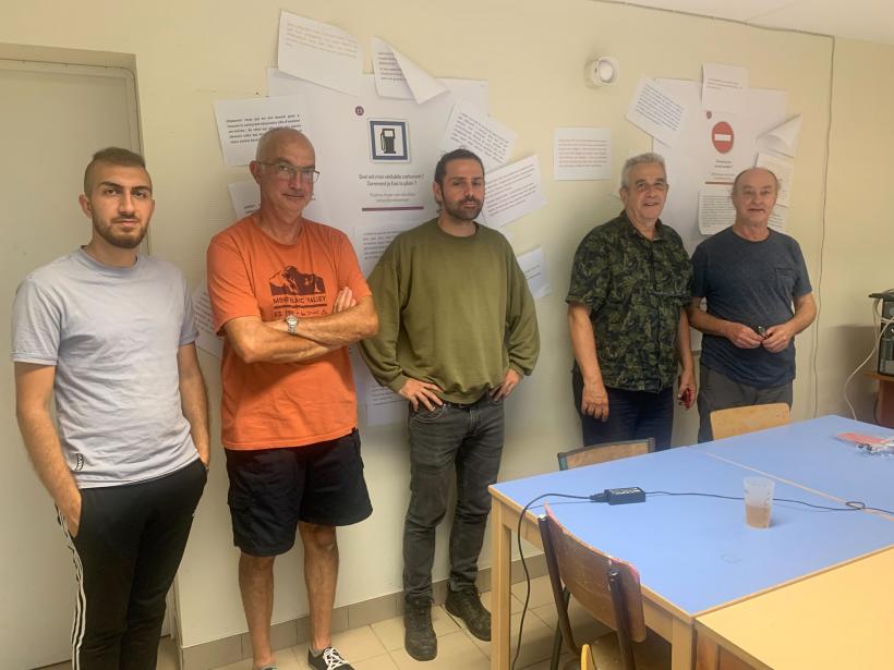 Le président de l'association la LOCO, Jean-Paul Bouvet, son trésorier, Didier Luce. Mais aussi Vincent Vignaud, ancien chef de service du CADA et membre de l'association, ainsi que Pascal Mansion, adjoint au maire de Saint-Beauzire et Salah et Khaled deux demandeurs d'asile résidents au CADA.