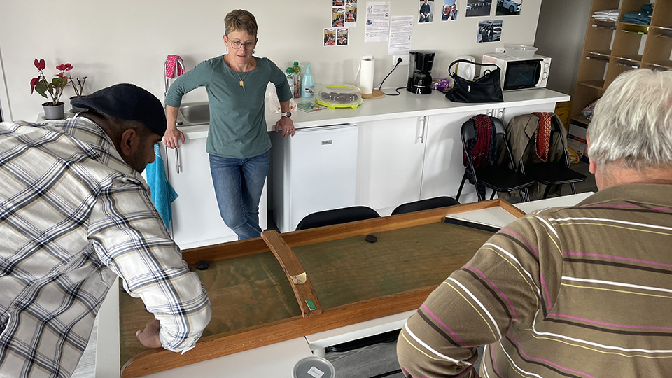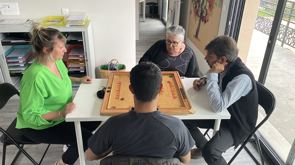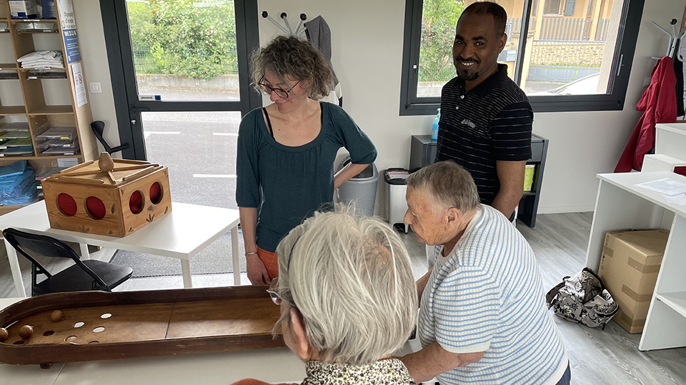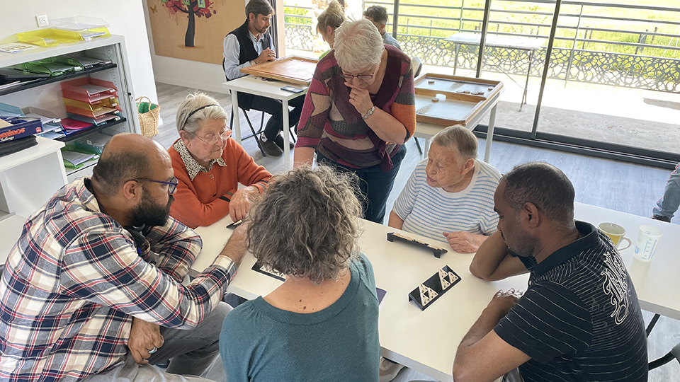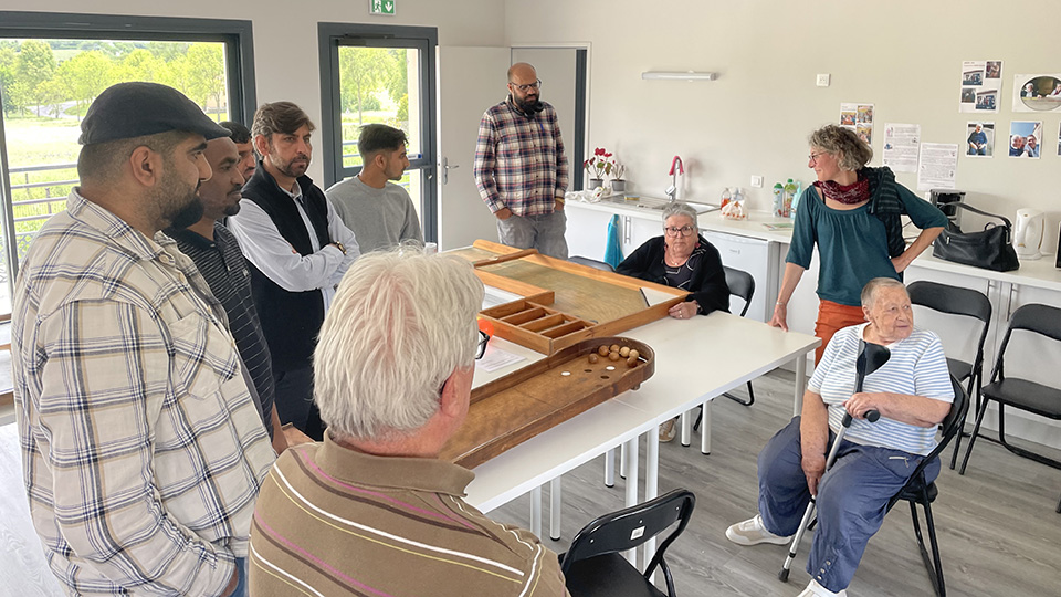La rencontre a commencé par la présentation de chacun. L’intervention d’une personne en lien avec l’ADMR a donné le ton de la rencontre : « Je me réjouis de ce qui se passe aujourd’hui. Ma famille a fui le Portugal sous Salazar et j’ai souffert d’isolement durant plusieurs années. Il n’existait rien pour nous soutenir. Aujourd’hui des choses sont en place pour favoriser la venue des demandeurs d’Asile ». C’est effectivement un des objectifs de la rencontre du jour. L’autre étant de permettre à des personnes âgées isolées de se retrouver avec d’autres. Et cela aussi fut chose faite. Les uns et les autres partageant les jeux ensemble.
