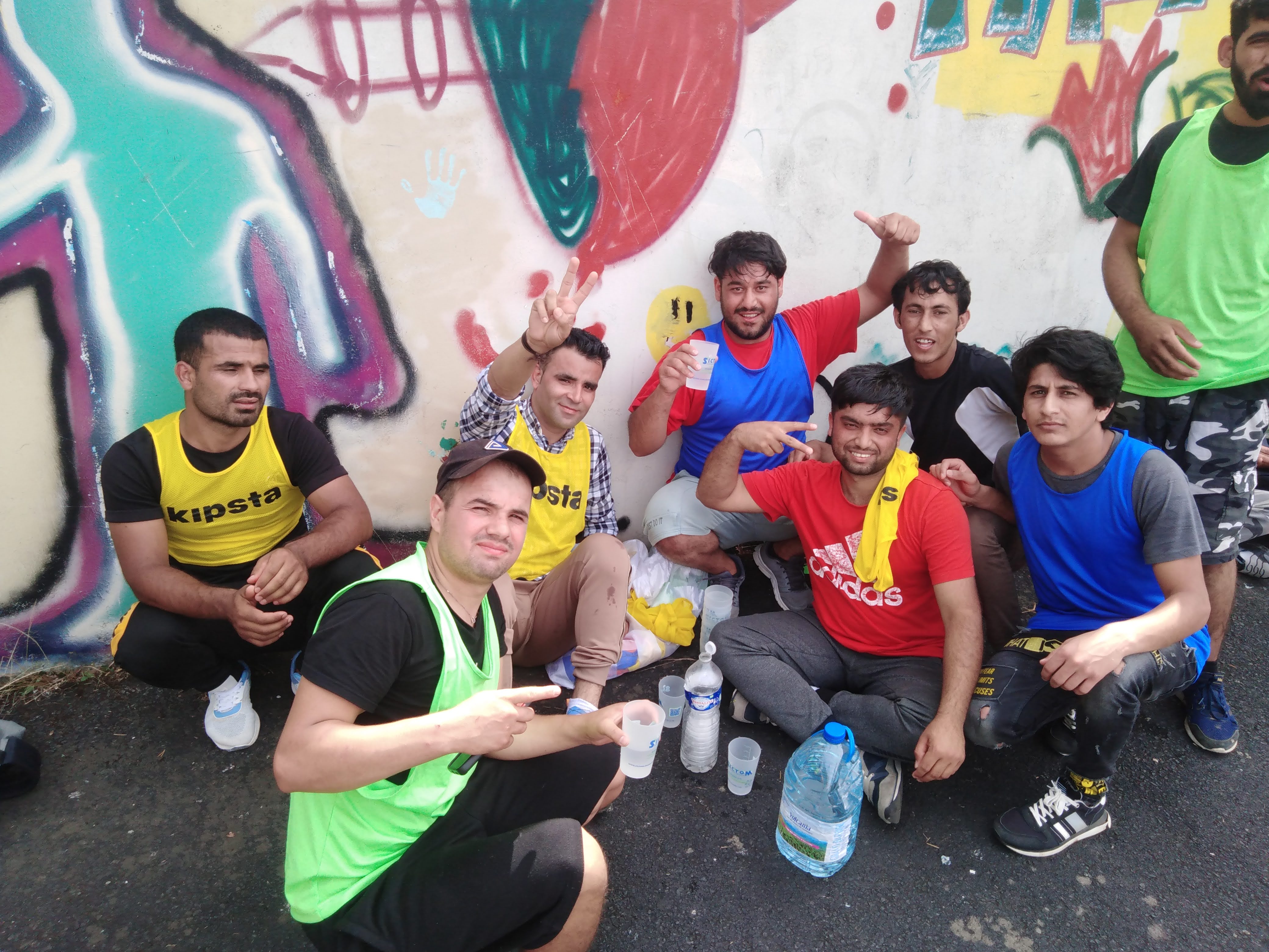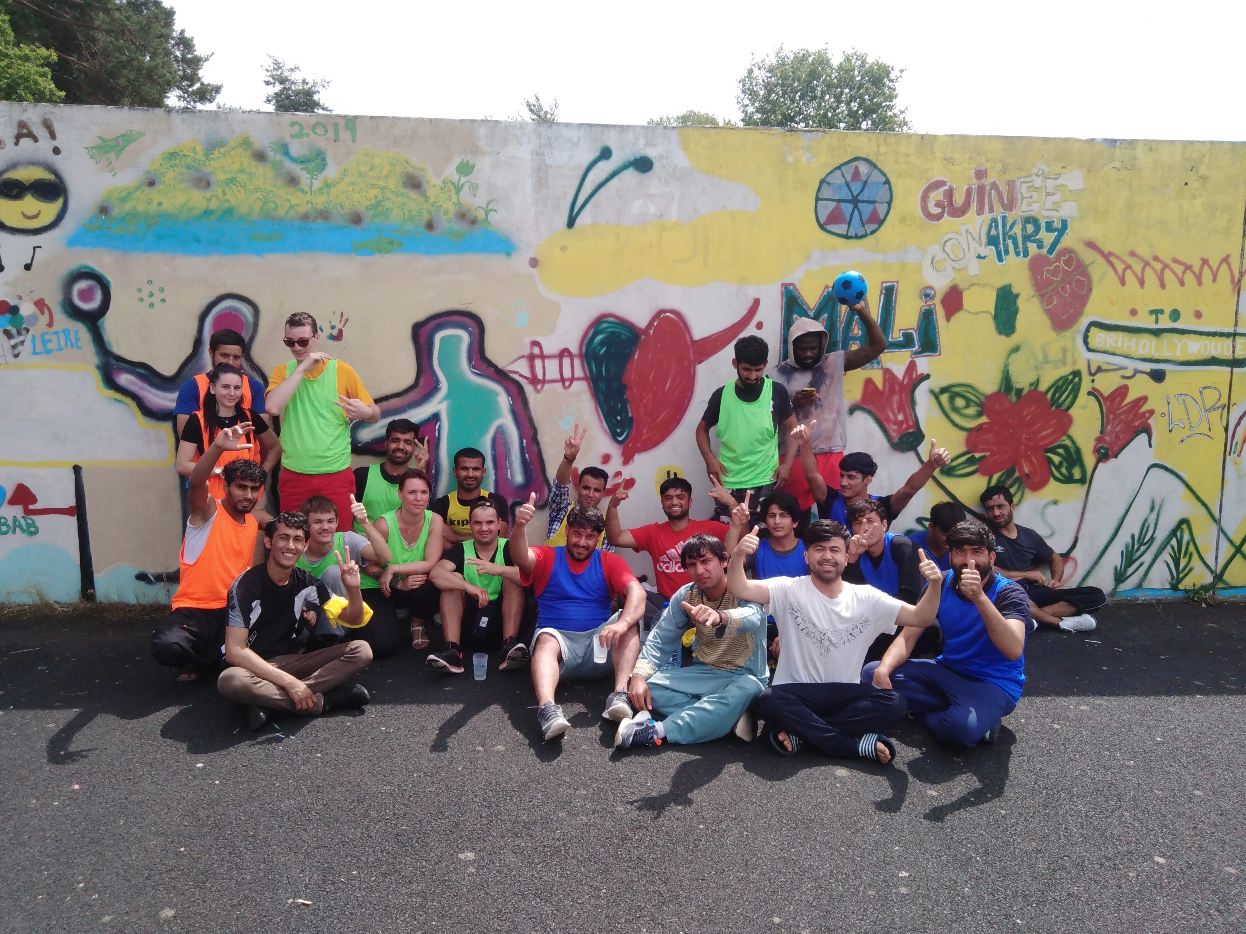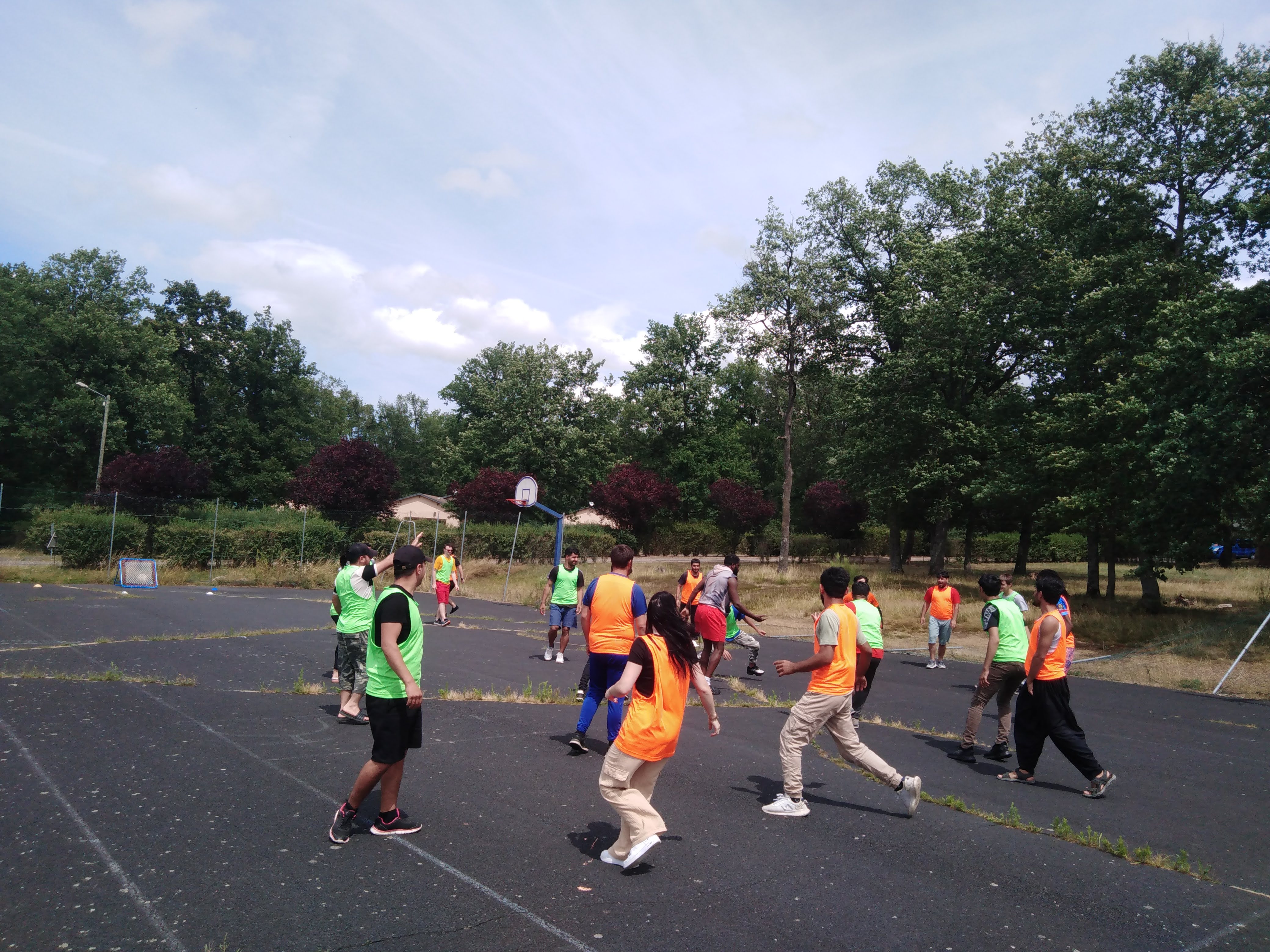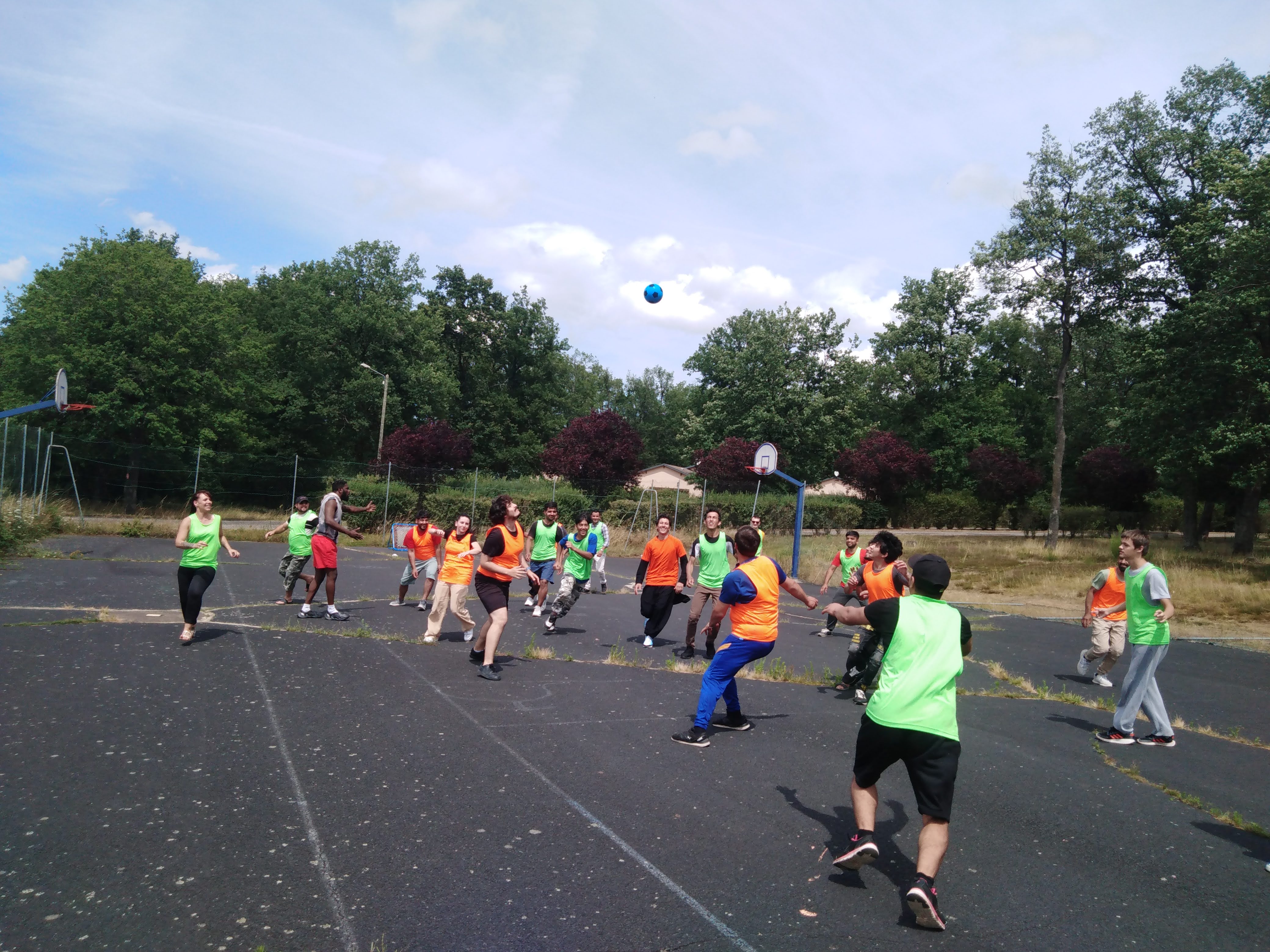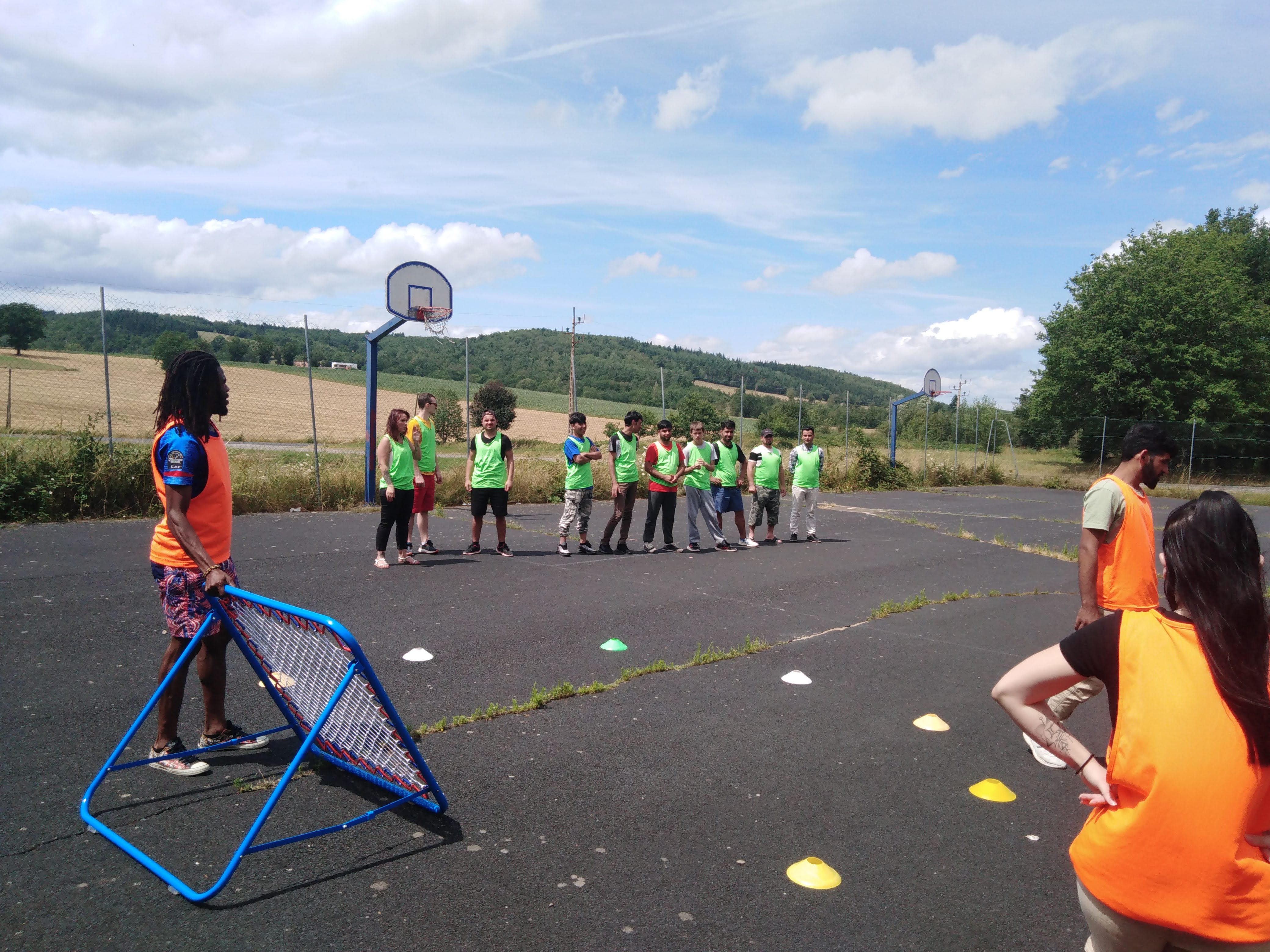 Mais d’abord, l’échauffement et la familiarisation avec la cible. Puis quatre équipes de 5 personnes ont été formées et le petit tournoi commençait. Finalement l’équipe jaune a remporté la victoire. Mais peu importe – l’important était de jouer ensemble et une fois de plus il était prouvé que le sport aide à dépasser les barrières de la langue.