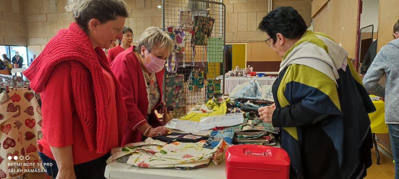 Le vente de réalisations des ateliers ‘couture’ de la LOCO a soutenu le partage avec les habitants : « On peut rencontrer des gens du CADA ? » « Oui, Madame ! » « Ils parlent français ? ». Khaled aidait la bénévole sur le stand. Celle-ci répond : « Vous pouvez parler avec Khaled. » « Comment as-tu appris le français ? » « Des bénévoles viennent sur le CADA et nous donnent des cours. »