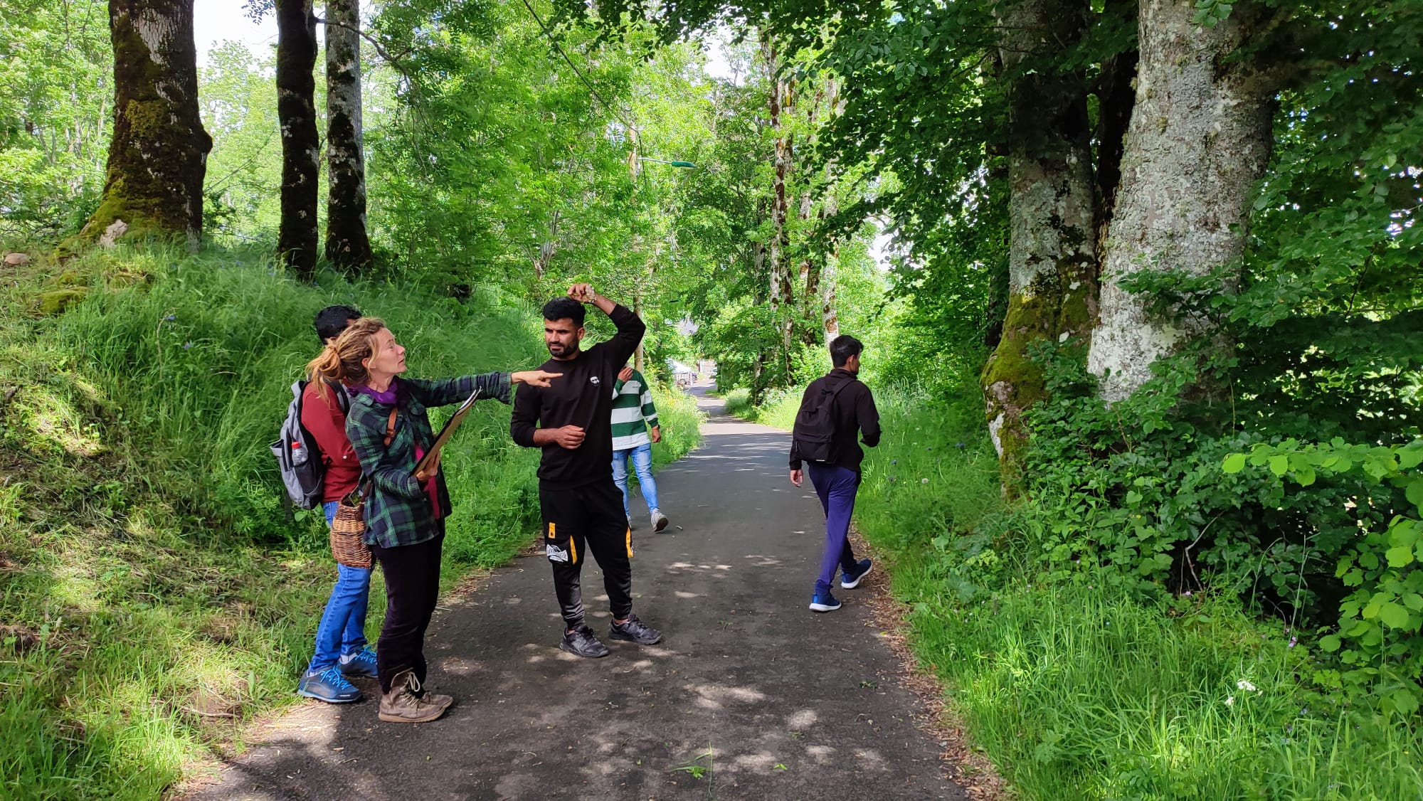 Une fois à Compains, ils ont retrouvé Jean-Paul et Natali et les résidents du CADA. Ensemble, ils ont pris la direction d’Espinchal, commune sur laquelle se trouve l’œuvre des Brindilleuses : La carte du monde.