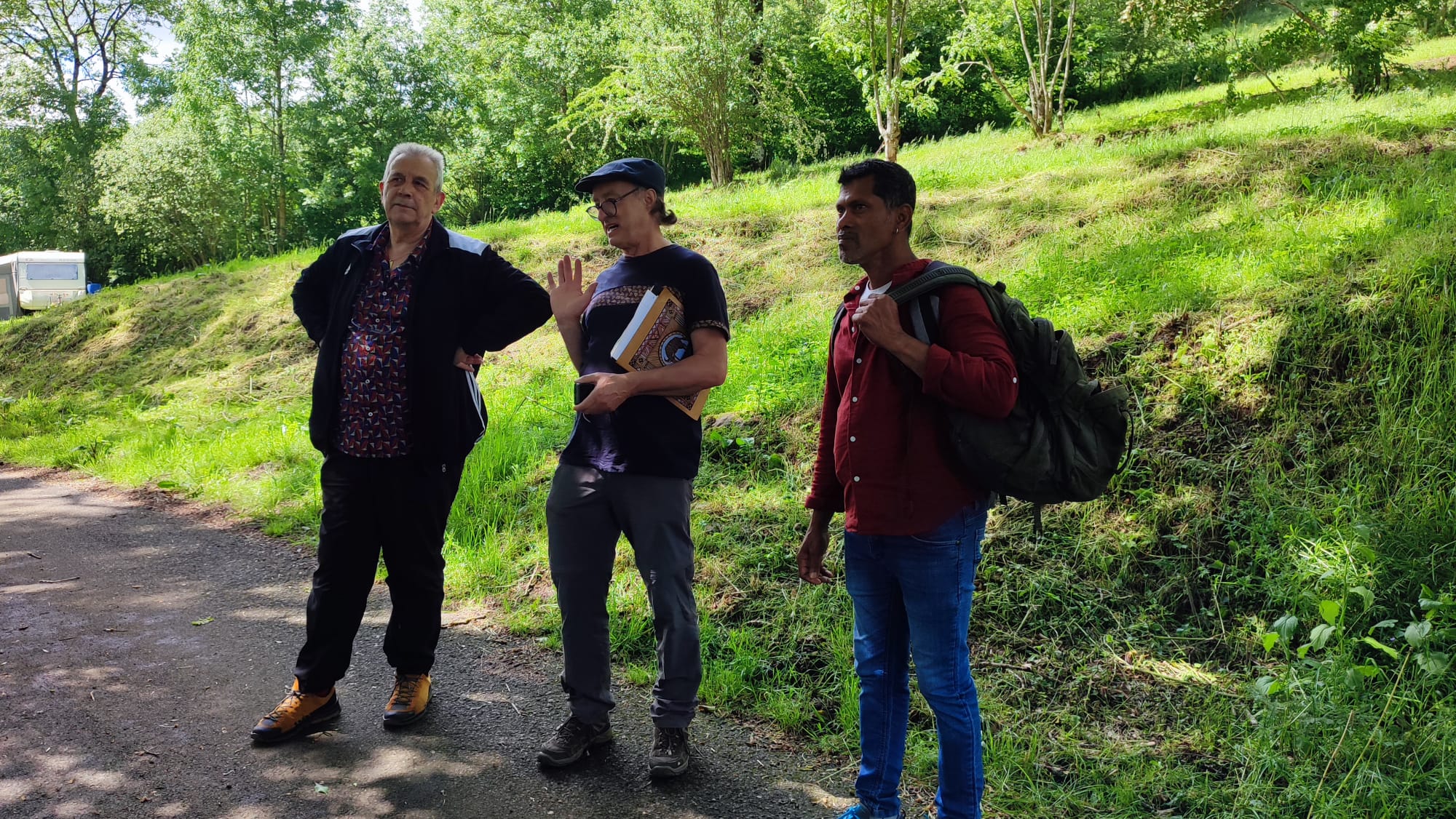 Quelques jours avant, ils avaient fait signe à d’autres amis, adhérents eux aussi de la LOCO, qui aiment aller à La Godivelle, une des communes concernées par l’exposition. Des ancêtres ayant vécu sur ces terres. Rendez-vous est pris. De plus, ils ont pris avec eux Salah et Khaled qui souhaitaient voir l’œuvre confectionnée par leurs anciens camarades du CADA.