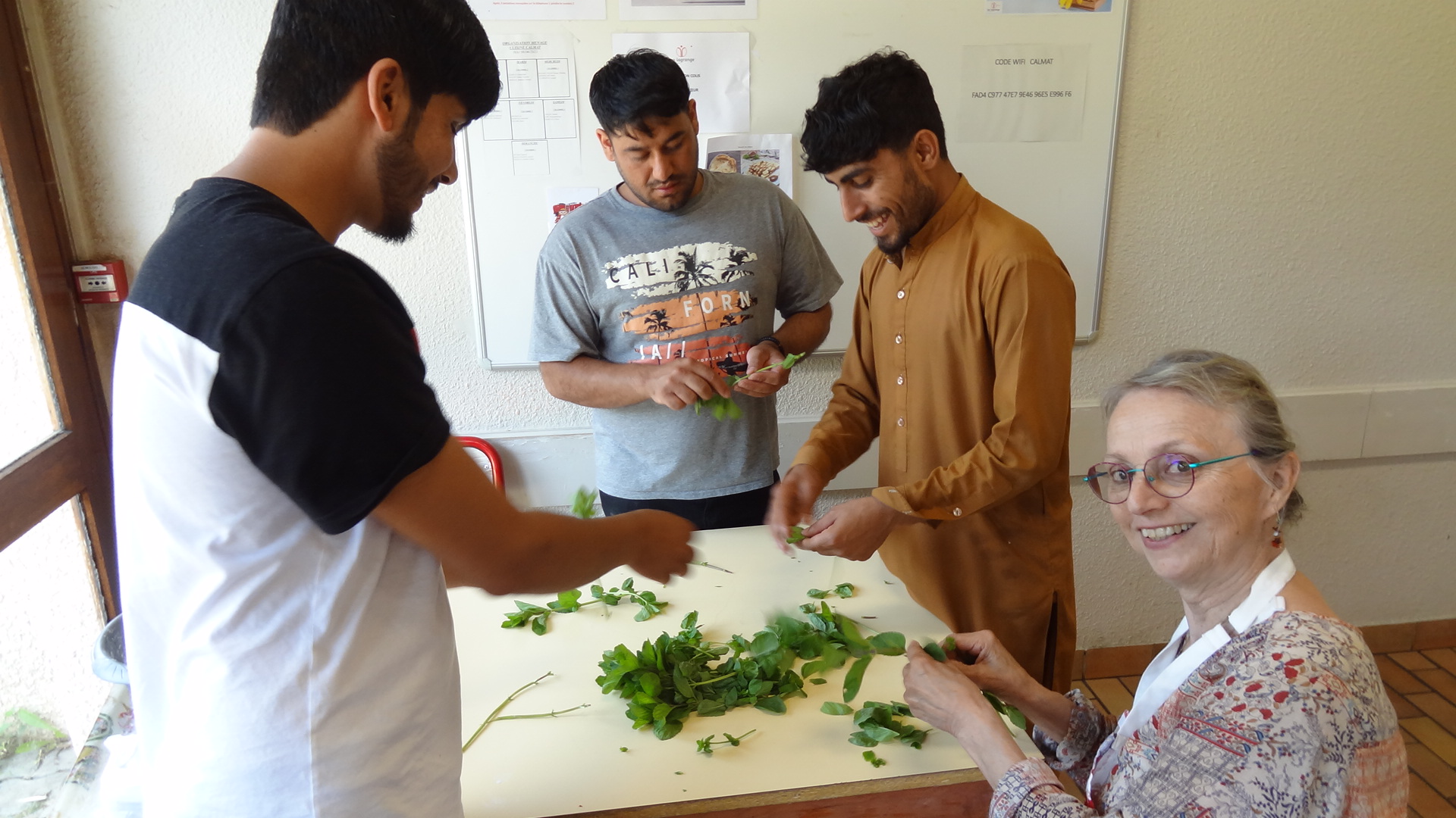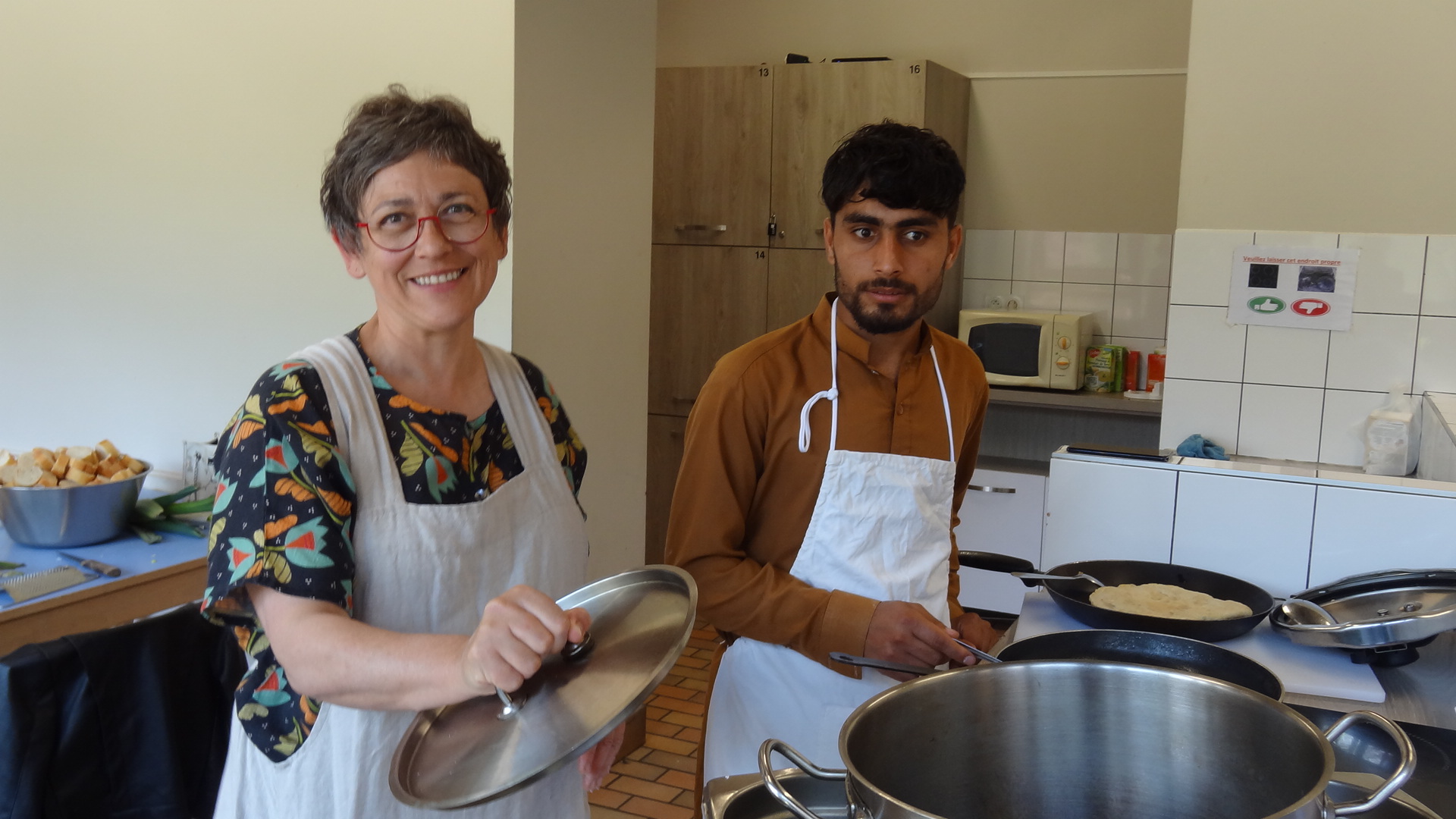 Nous avions proposé pour cet atelier cuisine de confectionner, d'une part, un plat afghan et d'autre part, un plat soudanais. S'ajoutaient à ceux-ci, des tartes au pesto et parmesan - et enfin des melons (que nous avaient offerts les Restos du Cœur).