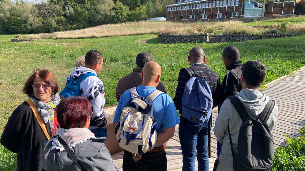 Vendredi 23 septembre six résidents du CADA, Juan-Carlos, Alam, Mamadou, Léonardo, Abdul Mosaver, Rolland accompagnés de Geneviève, bénévole à la LOCO ainsi que trois membres de l’Espace de Vie Sociale de Brin de Ficelle à Fontannes, Vivien, Hélène et Danielle se sont rendus à Chavaniac pour une visite orchestrée par Pauline animatrice au CBN sur la double thématique « Plantes à usages » ,« Des Hommes et des Plantes».