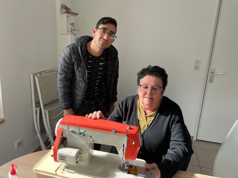 Alors qu’il inscrivait sa famille, le bénévole lui parle des activités que son épouse pourrait rejoindre. Il y a un atelier couture… Des bénévoles confectionnent des sacs qui sont vendus afin de soutenir les diverses activités proposées. Il dit au bénévole que celle-ci était professeur de couture dans son pays. Ce n’est pas tombé dans l’oreille d’un sourd. « Peux-tu lui demander de venir voir les sacs réalisés ? » Un peu plus tard, son épouse, Ségolène était dans les locaux de la LOCO et regardait les sacs confectionnés par les bénévoles. Elle était d’accord pour participer à l’atelier couture.