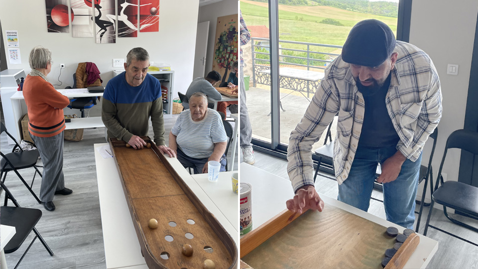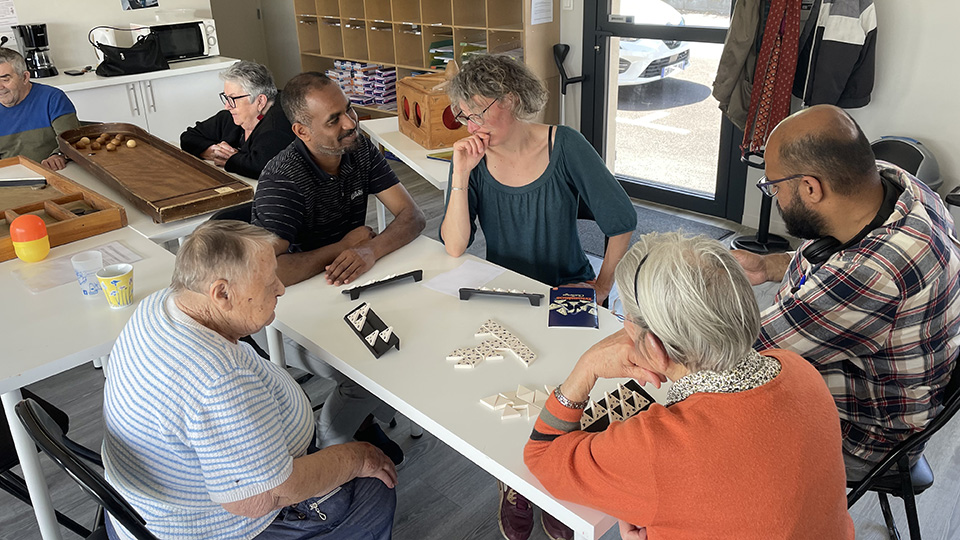La rencontre a commencé par la présentation de chacun. L’intervention d’une personne en lien avec l’ADMR a donné le ton de la rencontre : « Je me réjouis de ce qui se passe aujourd’hui. Ma famille a fui le Portugal sous Salazar et j’ai souffert d’isolement durant plusieurs années. Il n’existait rien pour nous soutenir. Aujourd’hui des choses sont en place pour favoriser la venue des demandeurs d’Asile ». C’est effectivement un des objectifs de la rencontre du jour. L’autre étant de permettre à des personnes âgées isolées de se retrouver avec d’autres. Et cela aussi fut chose faite. Les uns et les autres partageant les jeux ensemble.