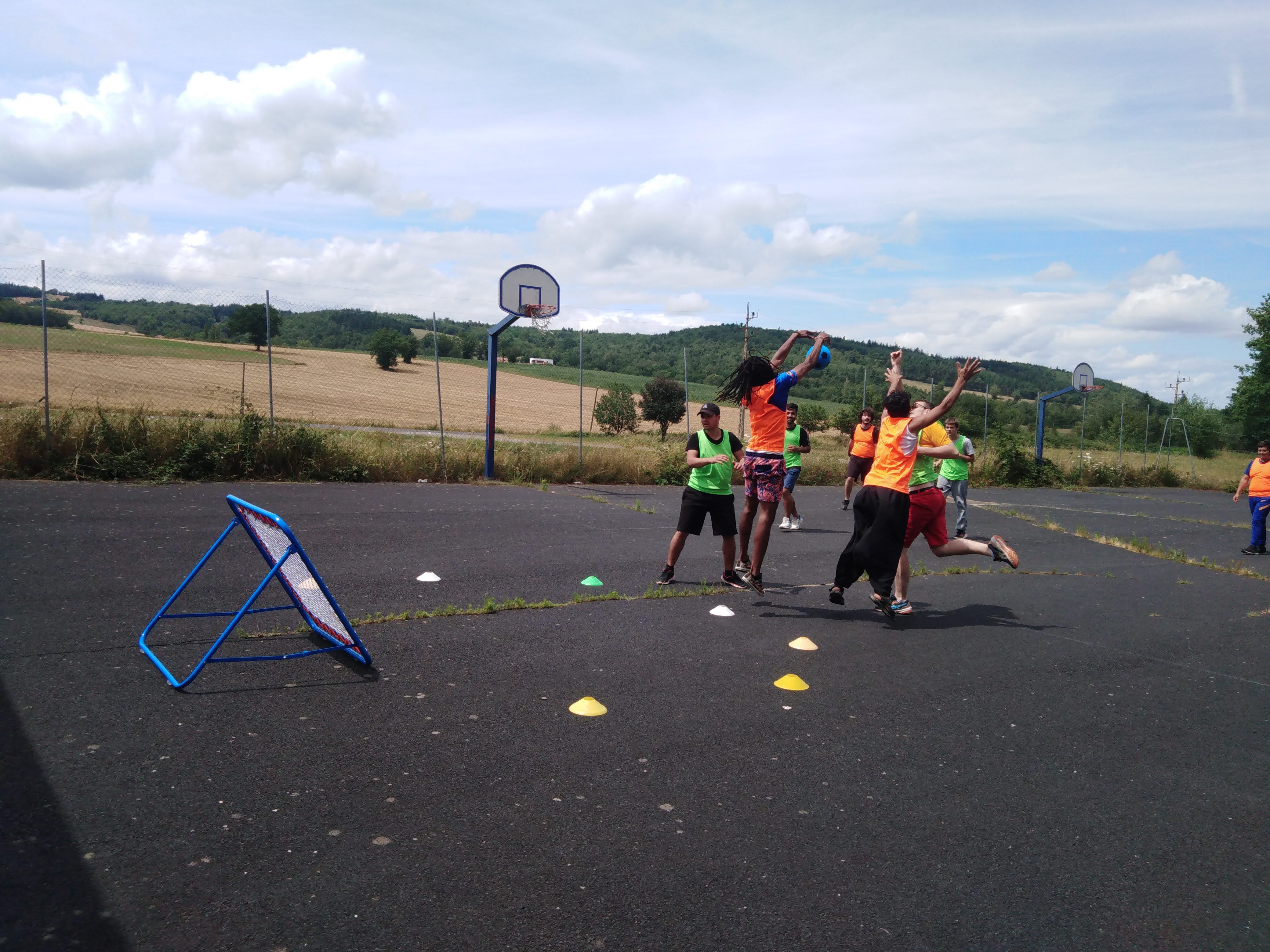 Notre initiateur sportif S. était le coach assisté par Fénélon. S. avait choisi l’activité tchouc-ball. Un sport d’équipe dont le but et de marquer un point en lançant un ballon sur un trampoline sans que l’équipe adverse l'attrape au rebond. Ça carbure.